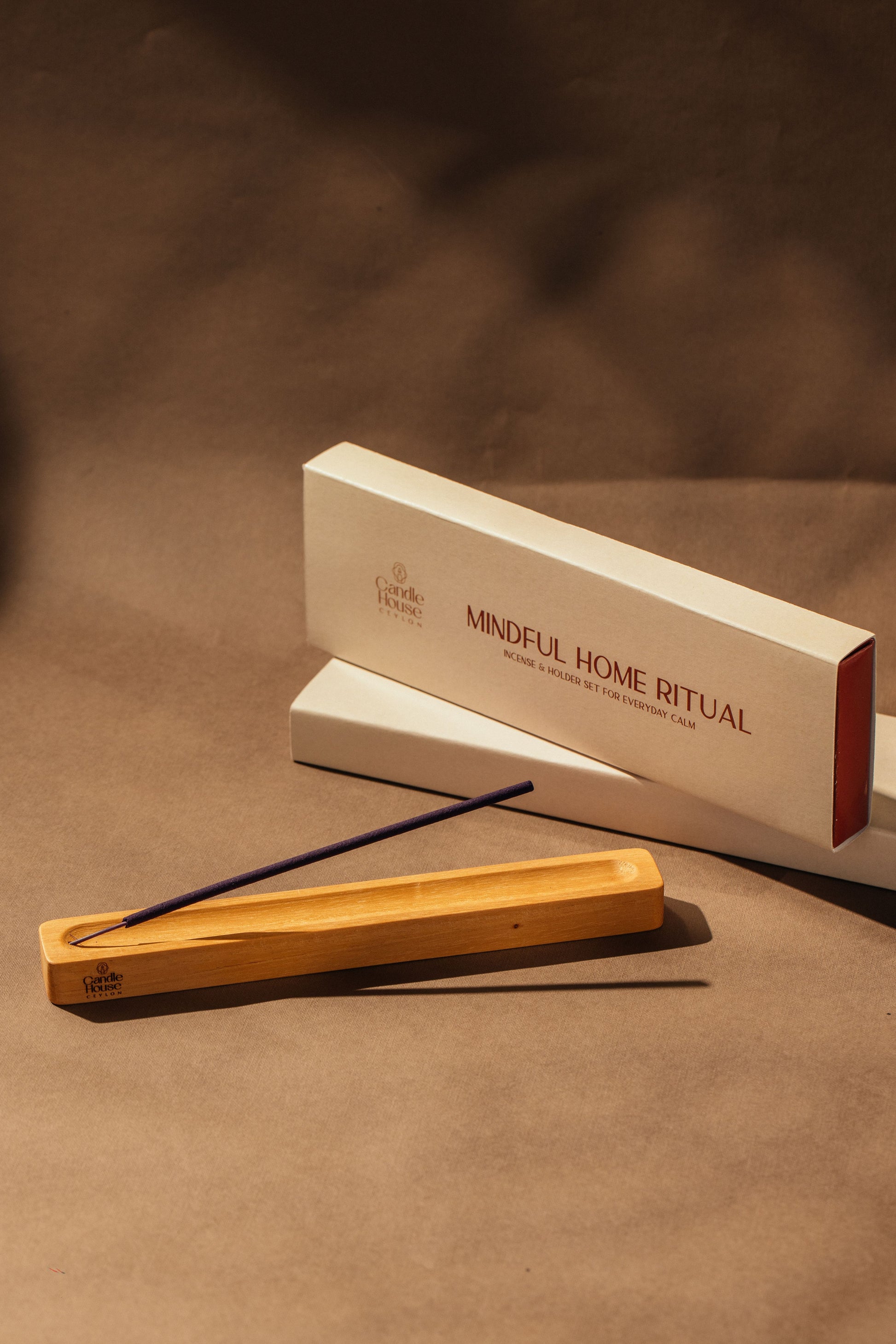 This set was created to bring a little stillness into the everyday, a custom mahogany incense holder, designed as a warm, modern accent for your home, paired with 15 eco-friendly, 7” incense sticks offered across four fragrance blends to suit your mood and moment.